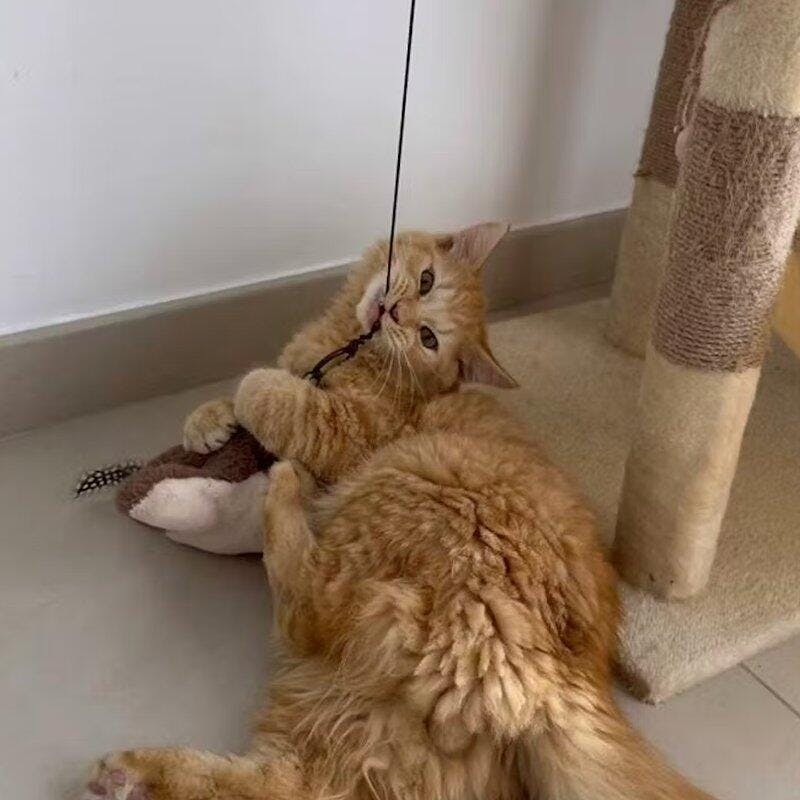 - Funcionamiento: El juguete NO vuela por sí solo. Incluye gancho y cuerda para colgar y jugar con la mascota.